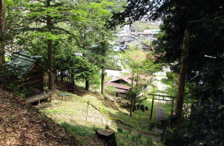 ▲左端が蚕玉神社。山麓に見おろすのは宮ノ脇公館
