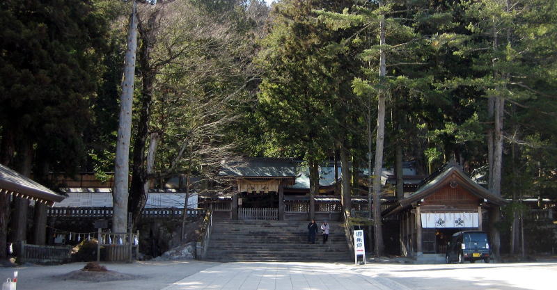 上社本宮は、建御名方神とその妃、八坂刀売神を祀った神社です。信濃国を創成した神々ですが、大和王権の国造り神話『古事記』では、大国主の次男、建御名方神は、大和王権系の神に国を譲るよう迫られたことに反抗して、出雲から信濃の諏訪まで逃れてきたことになっています。
