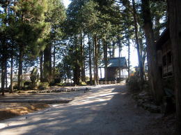 この神社の境内通路は、神体としての守屋山の東側の尾根裾を等高線に沿って東から西に歩むような造りなのです。