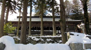 一番下の段丘で、二の鳥居に向かって右手には内御玉殿があります。宝物殿で、かつてここには真澄鏡と弥栄鈴などの神宝が収納されていたそうです。