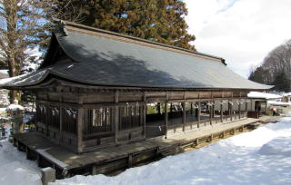 鳥居の反対側にあるのが十間廊で、これは中世まで諏訪の祭政の儀が執り行われた政庁だったそうです。廊閣の一番上座(右)には領主である大祝が座し、中位の座には家老や奉行など家臣団が並び、南にある高御子屋(神子屋)――今はない舞殿――での舞楽を見たそうです。