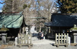 前宮は、本殿に向かって参道沿いに急な尾根斜面をのぼっていくようになっています。二の鳥居の前と後ろに2列の段丘崖があります。この地形は基本的には糸魚川静岡構造線の断層崖ですが、表層は北側も低地を流れる宮川と上川がつくった山裾の河岸段丘だとも見られます。