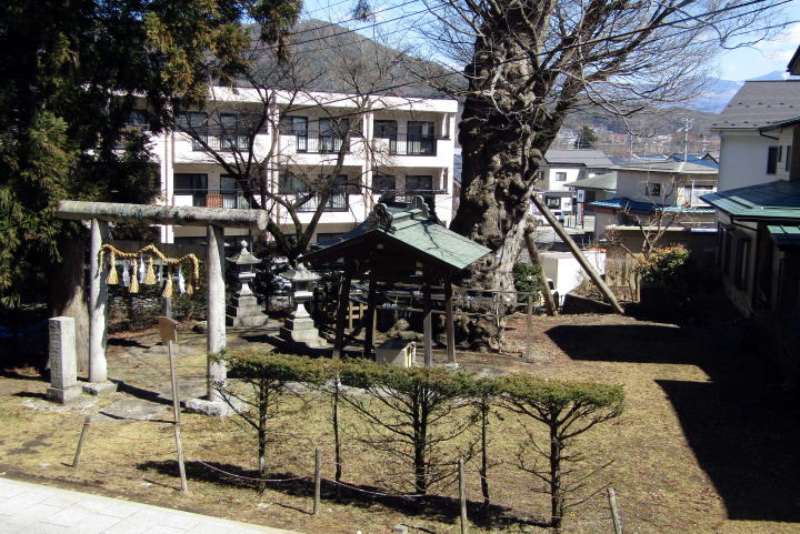 子安社の斜向かいには所政社が置かれています。所政社は大祝の諏訪神いがいの神々への参詣で最上位にあるとか。してみれば、高道沿いのここは、格式が高い場所だということです。