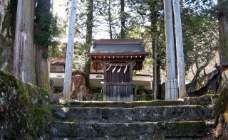 さて、本宮東参道の大鳥居の南脇に叢林にのぼる石段があります。石段の上は若宮八幡社です。諏訪では、その起源や由緒が諏訪大社と関係がなくても、諏訪大社を頂点とする体系序列に組み込まれれいるので、社殿の四囲には御柱が建てられています。