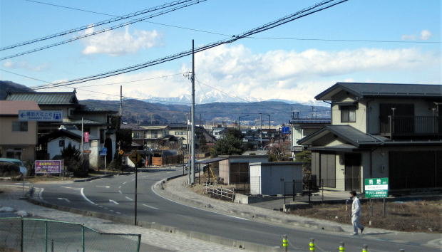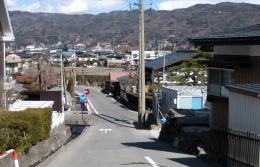 この辺りから南側に下馬沢川沿いの山麓斜面が近づいてます。その斜面には古くからの集落が続いています。下馬沢川は火焼山の尾根の東麓の谷間を流れ下る渓流です。