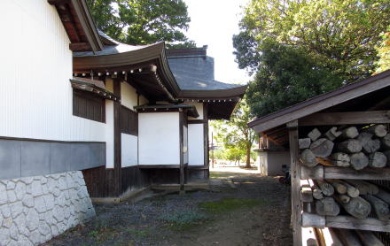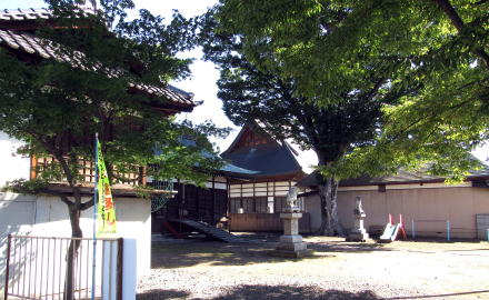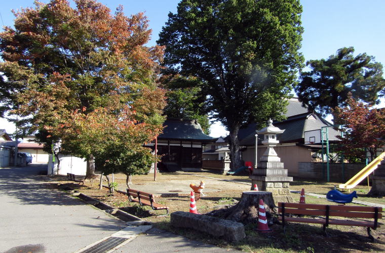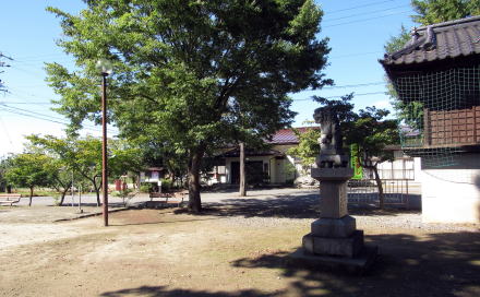 ![]() 相嶋神社の境内: 神社の西側に集落センターや公会堂がつくられたために境内は半分ほどに削られたようだ |