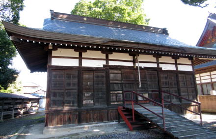 ![]() ▲諏訪大社系として大鳥居は明神式の形状だ ![]() ▲拝殿は基部が嵩上げされ板張りされている ![]() ▲拝殿と本殿との間に幣拝殿が置かれている造り ![]() ▲神社の社殿群と禅寺の堂宇群とが隣り合い並行している ![]() ▲宝物殿と見られる小堂も土台が嵩上げしてある ![]() ▲本殿の背後にある蚕影神社の祠 ![]() ▲拝殿前の境内の様子(背景が公会堂) |