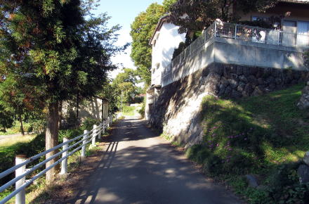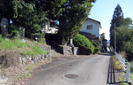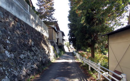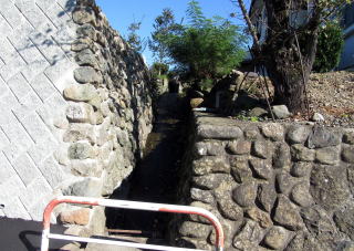 ▲石垣の間の石段は、江岸寺にのぼる参道