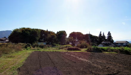 1970年代までは、小河原段丘下の低地湿田に人が入ると、腰または胸まで非常に柔らかな泥土に沈んでしまったそうです。そこで、人間の歩幅に合わせて杭を縦横に打ち込んで、碁盤の目のような杭の列をつくり、杭を足場として稲の苗を植え、稲刈りをしたのだそうです。大変に困難な作業だったのですが、数万年間以上も千曲川が上流から泥土や土砂を運んで堆積させたため、ものすごく養分があって肥沃だったのです。苦労して水稲づくりをする意味があったということです。