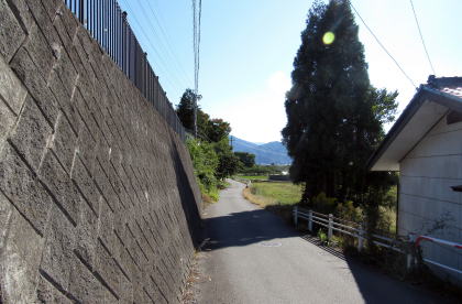 ▲段丘崖を支えるコンクリート擁壁は高低差3メートル近くある