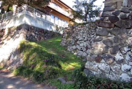 段丘崖を支える石垣は、かつて滝のような渓流から屋敷地を守る護岸だったようです。その石垣はあたかも城郭の跡のように重厚です。