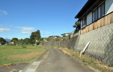 ここはやはり千曲川の本流が形成した河岸段丘崖で、昭和前期まで崖下を大きな分流が流れていたそうです。そして、1958年(昭和33年台風21号)と59年(昭和34年台風7号)、61年(昭和36年台風6号)、日本列島全体に大水害があったときに、千曲川が大氾濫を起こして段丘の縁まで水位が上がったため、この地区の西にある低湿地、旧小島村の人びとがこの段丘上に避難してきたそうです。