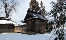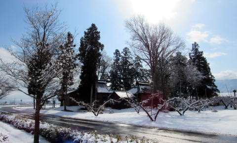 巻頭写真は、雪晴れの朝の境内と拝殿・社務所で、拝殿は諏訪大神系の特徴をもつ入母屋妻入造り。