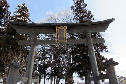 ▲社号の扁額を掲げる諏訪明神方式の大鳥居