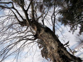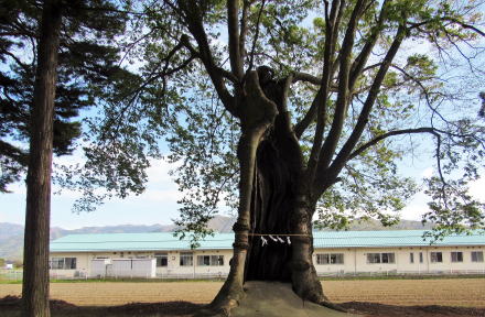 60年以上前の落雷火災を生き延びた大ケヤキ(神木)▲