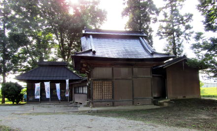 神社の神域境内の面積はおよそ2000uと広く、社叢は整った長方形をなしている。拝殿は江戸末期の建築で、社務所は鹿島社の拝殿を移築したものだという。