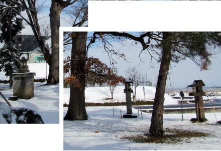 とはいえ、樹々が枝葉を成長繁茂させて社叢が鬱蒼とする季節には境内は薄暗くなるので、私のような素人には写真撮影が難しい場所でもあります。で、真冬の午前中に神社を撮影してみました。ところが、厳冬季の澄み切った大気のなかに射し込んでくる陽光は、まぶしいほどに強く、逆光気味になってかえって撮影は難しくなりました。ただし、私の目にはあらゆるものの輪郭はすこぶる明確になります――人間の目はよくできています。しかし、カメラの操作が難しくなりました。
