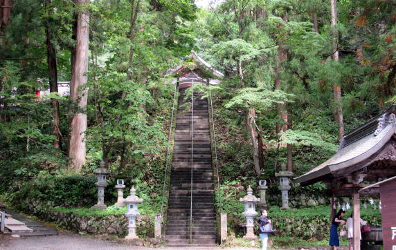 さて、中社大鳥居をくぐると、石段をのぼって最上壇の拝殿に参拝することになります。その周りには青龍殿や社務所が並び、奥には「さざれ滝」が水しぶきをあげています。