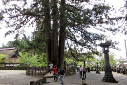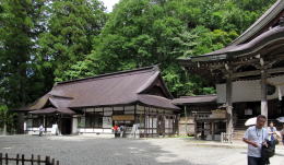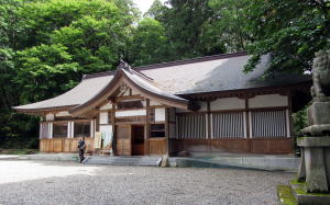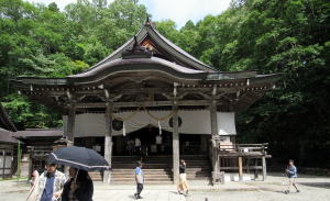 ところで、山や森をご神体としながら八百万の神を祀る日本の神社らしく、この境内にも多数の神を祀る社殿・祠があります。なかでも重厚な五斎神社の拝殿は大鳥居の横にあって、ひときわ印象的です。裏手の斜面に小さな本殿が置かれています。