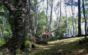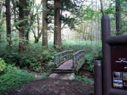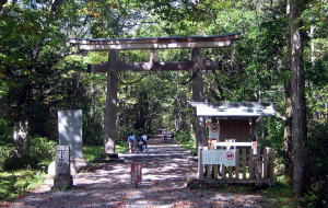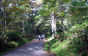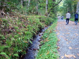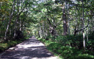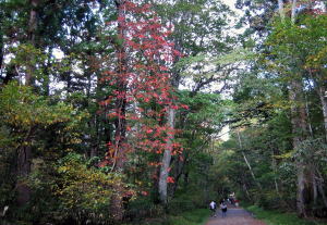 参道の西側(左側)は森林植物園となっています。植物園への連絡路は参道脇にいくつもあって、阿古に足を踏み入れると原生の自然林を体験できます。