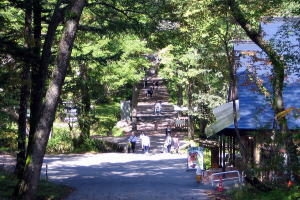 奥社参道は県道36号の北側から始まりますが、中社の西脇から奥社参道に連絡する遊歩道を歩いてくることをおススメします。