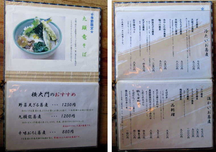 中社の東の地区、横大門にはなかなかに味の良い手打ちそば店「横大門」があります。中社前の店が混んでいて順番待ちするなら、そこから200メートル(徒歩で3分)のところのこの店がおススメです。