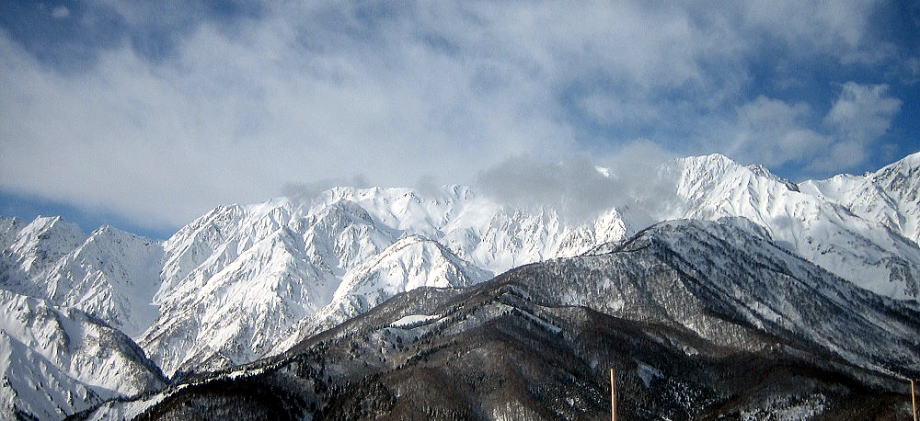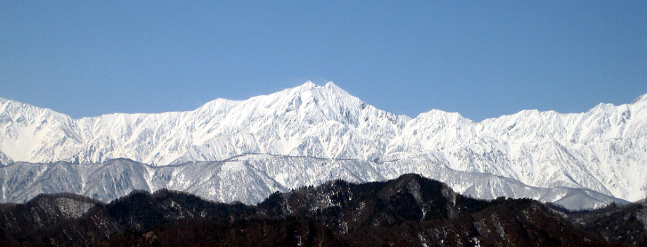 | 白馬村 いわたけスキー場から後立山連峰の八方山、唐松岳から五竜岳にいたる稜線を望む 撮影は2011年1月はじめ |