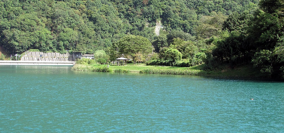 生坂村 東京電力犀川生坂発電所のダム湖。ダム湖の周囲は水鳥公園となっている。 撮影は2017年9月下旬 |