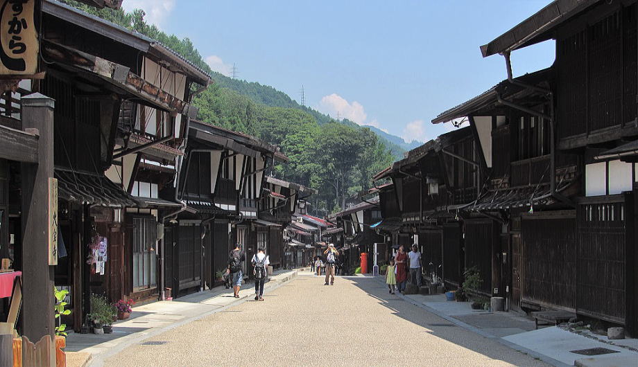 | 中山道木曾路で一番大きな宿駅、奈良井の街並み風景。上町と下町との境界辺りの景観です。この画面の先が平沢、塩尻方面です。 撮影は2019年8月はじめ |