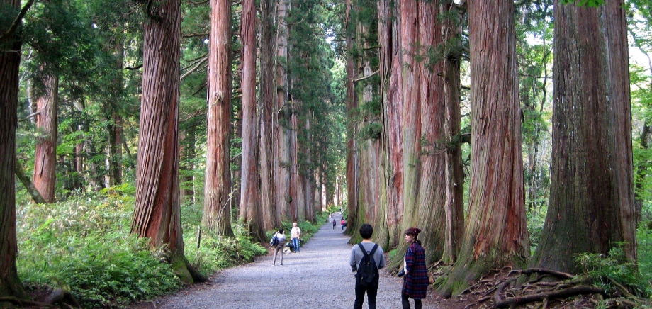 長野市戸隠の戸隠神社の奥社参道は、標高1100~1200メートルの高原の自然林のなかにあります。 この参道の随神門(仁王門)から先は、樹齢400年近くの老杉の並木に囲まれています。この並木は当初、今から400年近く前に松代藩真田家が戸隠神社の保護のために植林事業でつくられました。それ以前から参道並木はあったかもしれませんが。 自然の偉大さ、繊細さと人間の存在の小ささを体感できる場所です。 |
