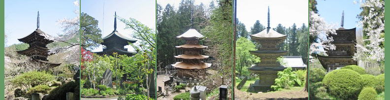 春、桜花に囲まれた三重塔 |