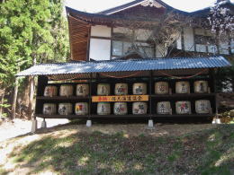 社務所の南側の軒下には、佐久地方にある多くの酒造蔵元から奉納された樽酒が並んでいます。佐久地方は水が豊富で豊かな米どころですから、長い歴史をもつ酒造蔵元がこれだけの数あるということなのでしょう。