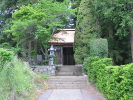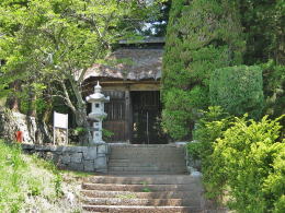県道80号から集落のなかを北に上る道をたどると、真楽寺の表参道にいたります。