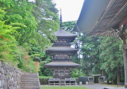 厄除観音堂の東側(右手)に三重塔があります。記録によると、塔は江戸期の慶長年間に焼失し、そのおよそ150年後(寛延年間)に再建されたといいます。