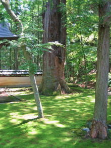 仁王門と本堂、禅堂、知客寮などに囲まれた中庭は、人為を匂わす庭園となっていますが、そのほかは、自然林の味を残した里山風。