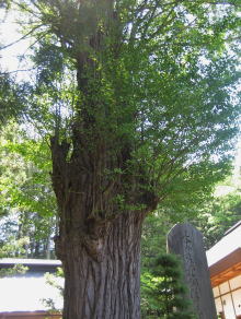 ▲銀杏の近くには、これまた450年の樹齢と推定される老杉