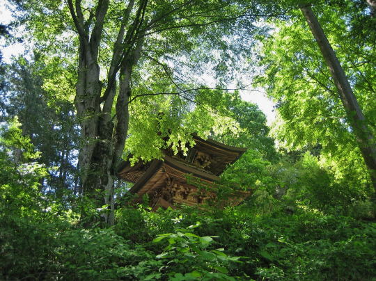 樹下の陰影と樹間からのぞく天空の眩しさのコントラスト。それが、貞祥寺の境内の森歩きの強い印象です。