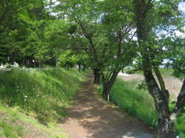湖畔の遊歩道や道路沿いにはたくさんの桜の木が植えてあって、みごとな並木をつくり上げています。春には花見の名所となっています。美しい花を咲かせた並木の景観写真は、この最初の記事ページに掲載してあります。