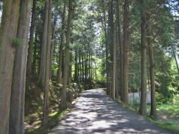右上の写真の狭い舗装道路をクルマで登り、身体の不自由な人や歩行困難な人は、この道から寺の堂宇に行くことができます。