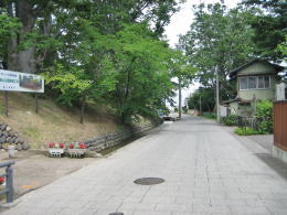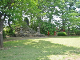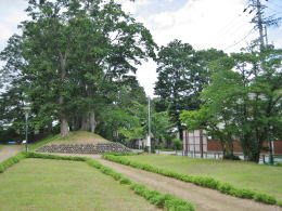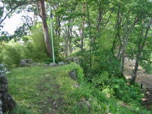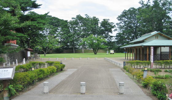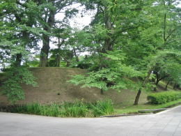 公園に今でも残っている中世城郭の土塁は、西側と北側、ならびに東側の一角だけです。そのうち南西端の一段と高い土塁郭に物見櫓があったと思われます【写真上】。