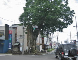 ▲街の入口にある野沢町の名物 ケヤキの古木 ▼弁財天の社殿