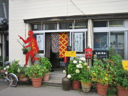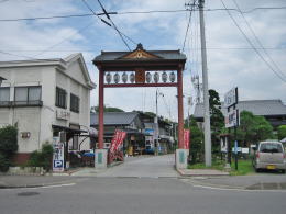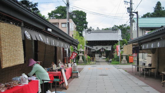 毎月第二土曜日に開かれる門前市は、この界隈の名物行事で多くの人出があるそうです。ただし、今後の街の活性化のためには、やり方を見直す時期が来ているのかもしれません【写真下:門前市の幟】。