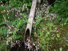 山水庭園の池の周りには、何やら珍しい植物・花が植えられています。