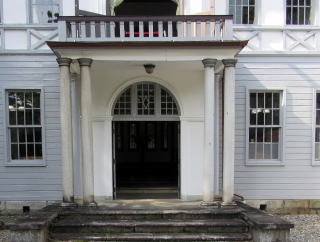 【バルコニー底部が円柱列とともに玄関の装飾となっている】