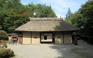 主屋の前には長屋門造りの納屋が置かれています。建物は倉庫として使われているのですが、一般農民に対しては藩の権威を伝達し、藩に対しては農民の代表として渡り合うための立派な門の構えをなしています。