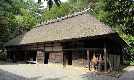 中南信には有力農民層の家屋として板葺本棟造りの古民家は数多く残されていますが、この寄棟茅葺造りの古民家はそれよりも100年近くも古い様式の建築なのだそうです。