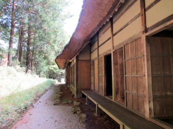 旧竹村家の長屋門様式の納屋(寄棟茅葺)