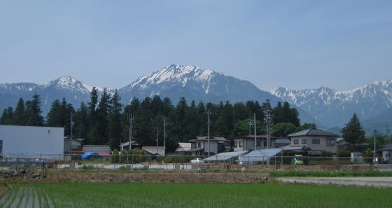 雄大な北アルプスの連峰の麓には、豊かな水に恵まれて、広大な水田地帯が開けています。