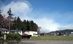 ▲桜が咲く頃に雪雲が襲ってくることもある(2016年4月11日撮影)