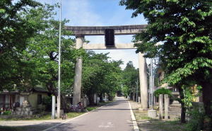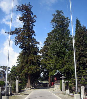神社の最寄りの駅は北大町駅ですが、神社の参道は、JR大糸線と平行に走る千国(糸魚川)街道(県道31号)に接続してます。